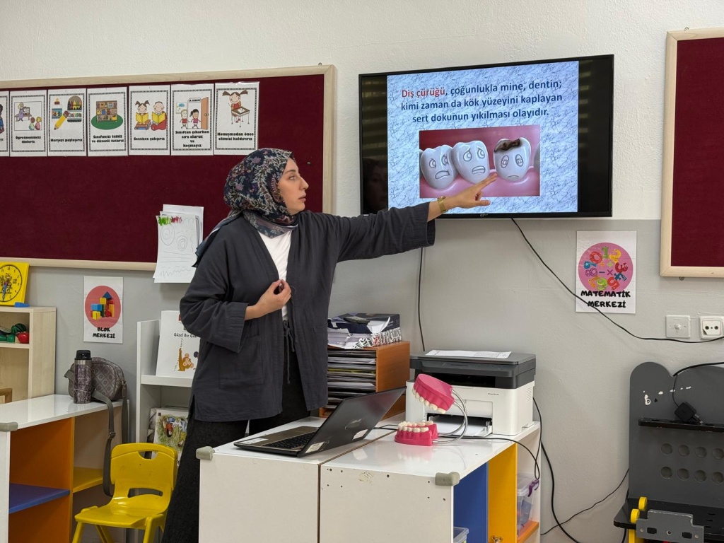 Eğitimde, öğrencilerimize diş fırçalama teknikleri maket üzerinde uygulamalı olarak gösterilmiş, ağız ve diş sağlığını korumanın temel yolları yaşlarına uygun şekilde anlatılmıştır.