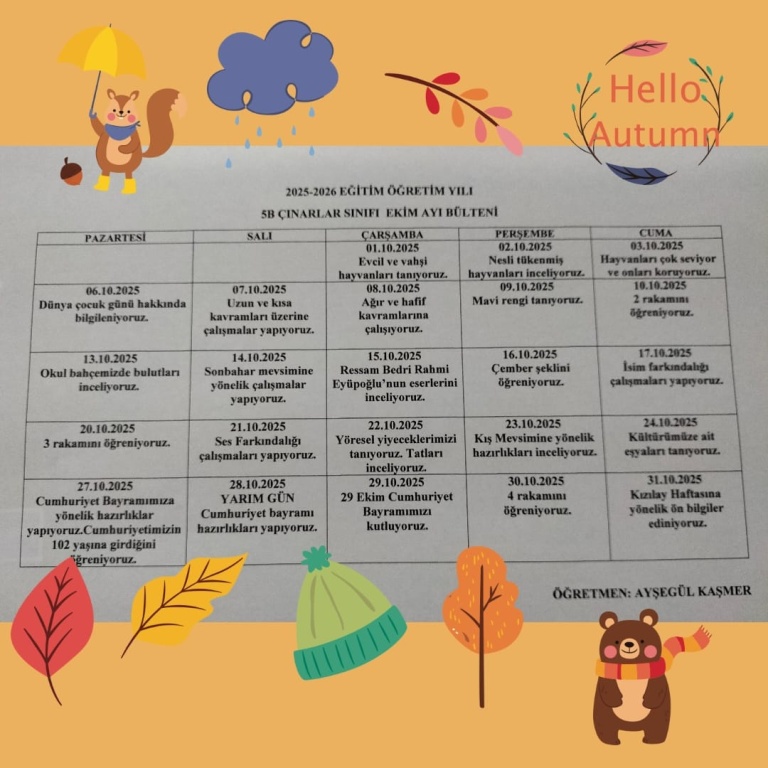 EKİM  AYI HABER MEKTUPLARIMIZ