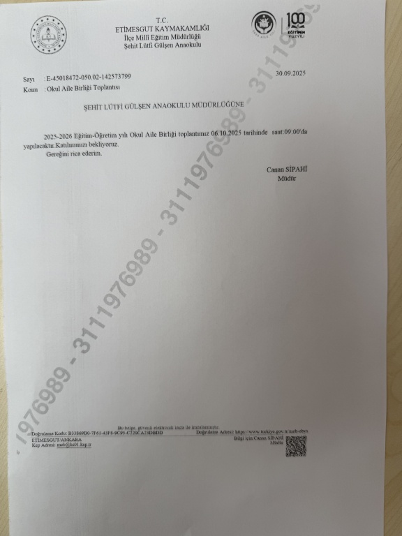 Okul Aile Birliği Toplantimiz 06.10.2025 tarihinde saat 09.00'da...